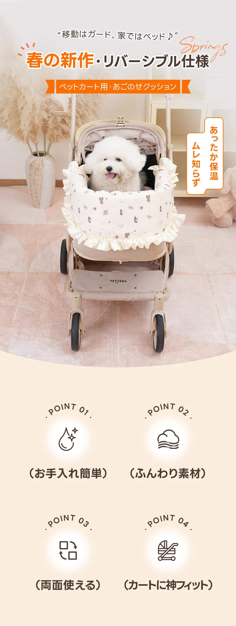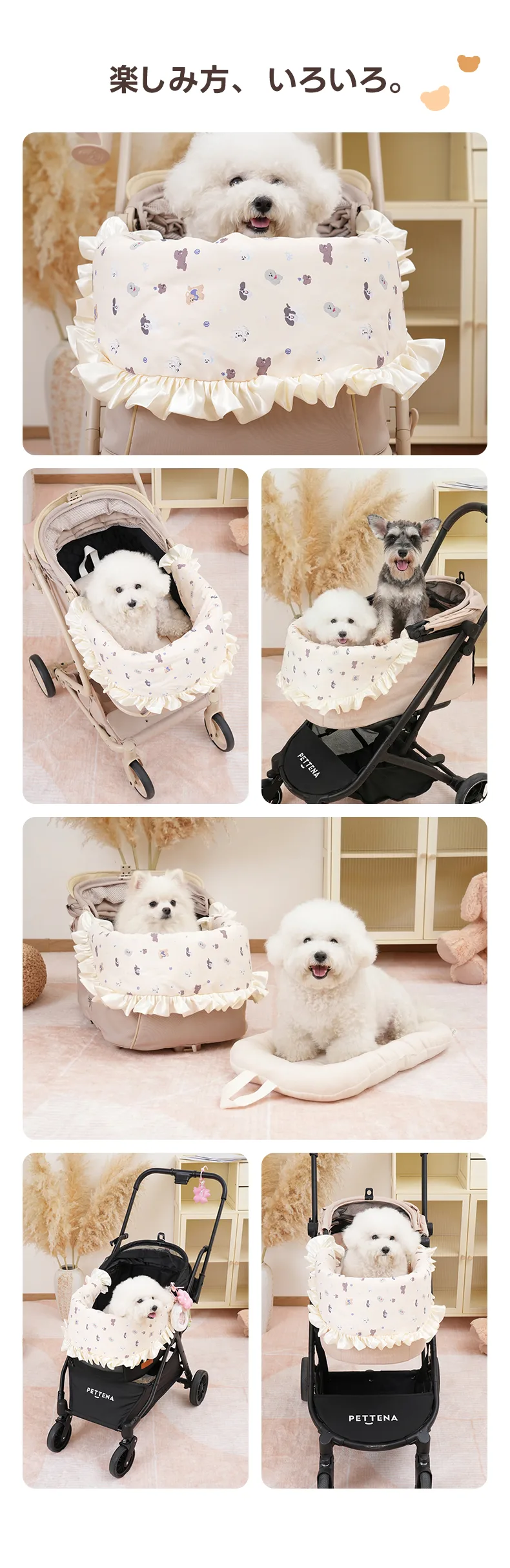 【春の新作】ペットカート クッション(パピー柄フリル) - PETTENA—