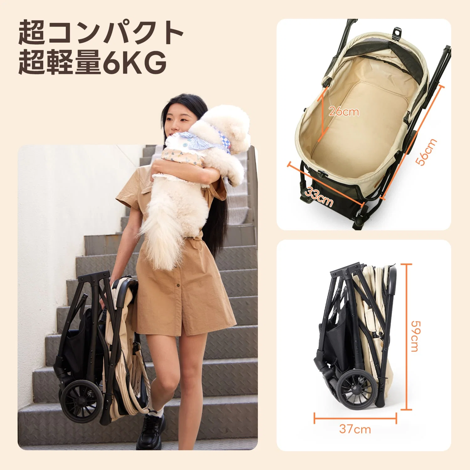 小型犬から中型犬、犬用バギーや犬用ベビーカーをお探しの方にもおすすめ。折りたたみ・軽量・コンパクトな一体型ペットカートで、毎日のお出かけをもっと身近に。