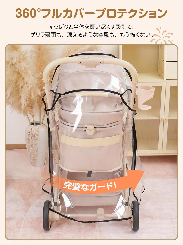 【MILOU/ORION/KNIGHT用】レインカバー ダブルファスナーで天窓開閉
