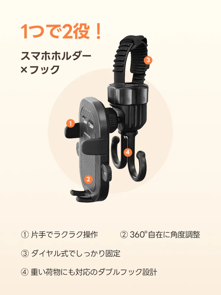 PETTENA マルチホルダー ペットカート用 |スマホスタンド&荷物かけ