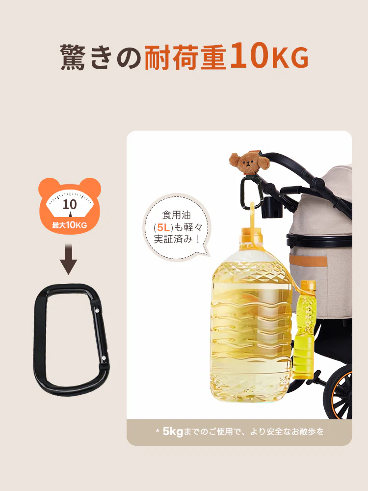 -70%[耐荷重10kg]アルミ製&高級レザー調 カート用フック—